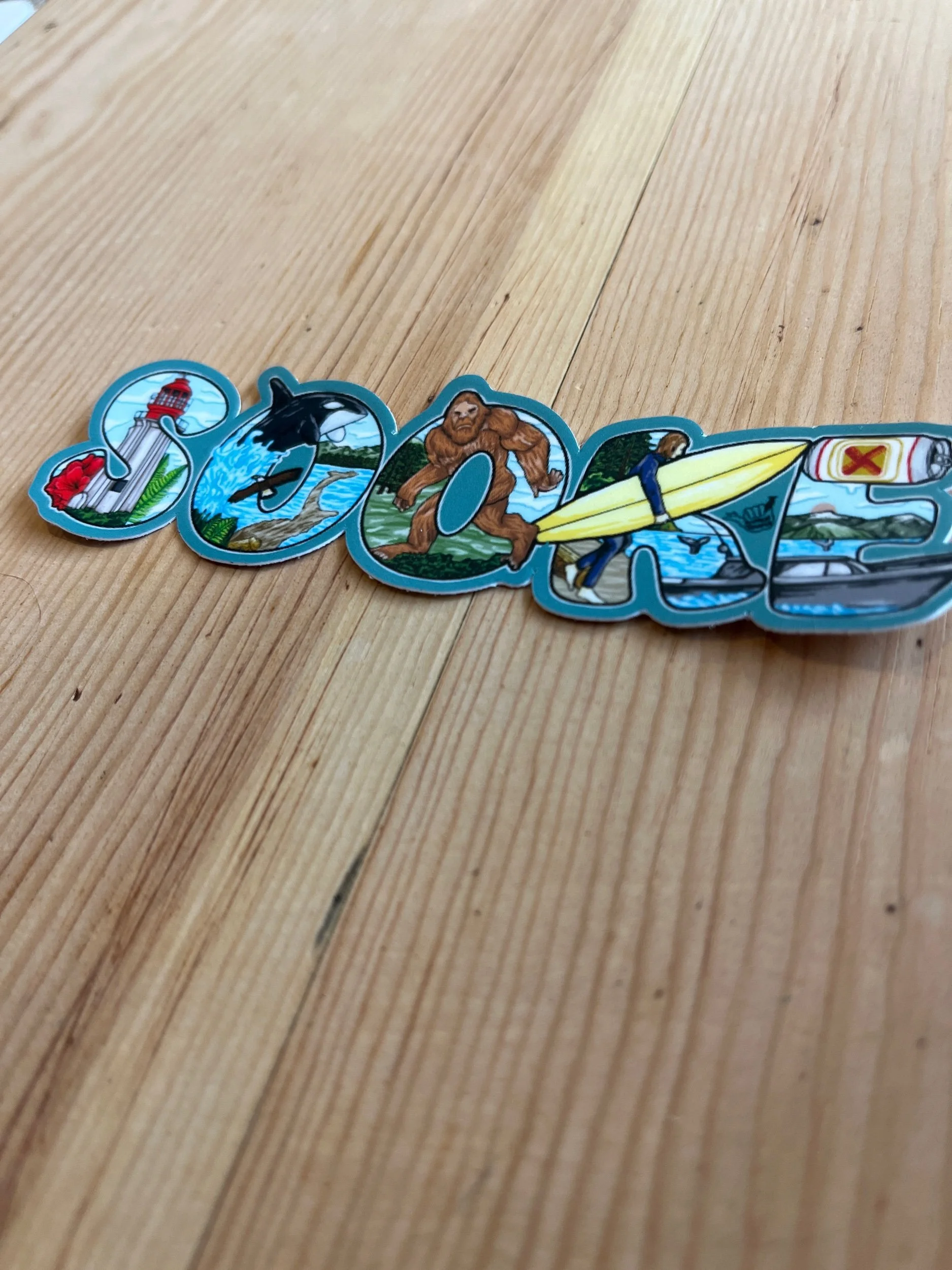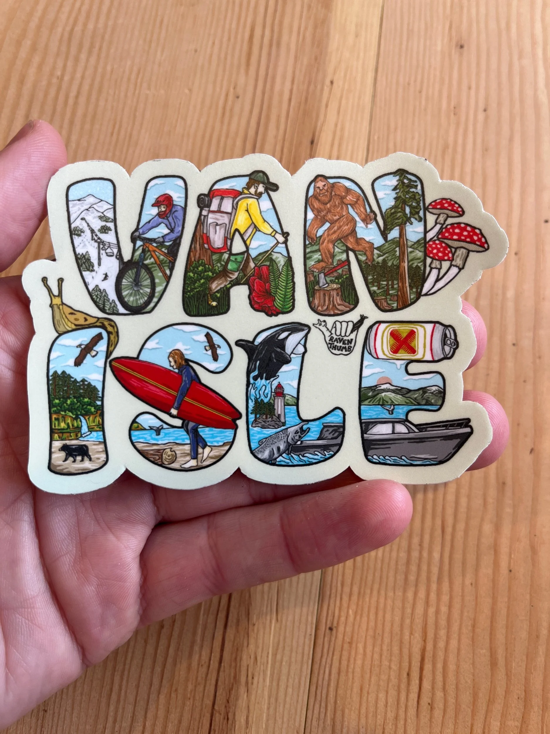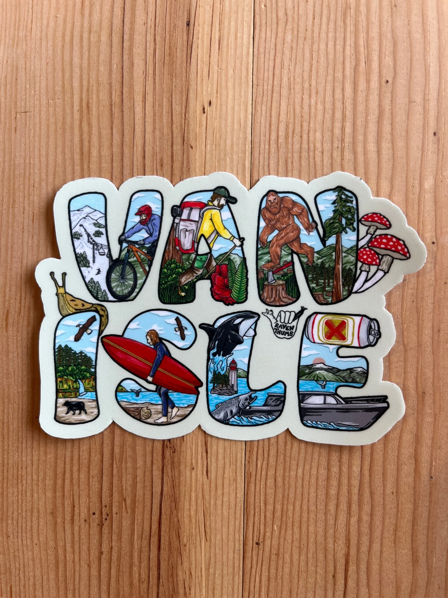 The ultimate sticker for Vancouver Island including highlights from the beautiful island. Including hiking, biking, snow, fishing, all the wildlife, a lucky lager can and why not throw in a Sasquatch!