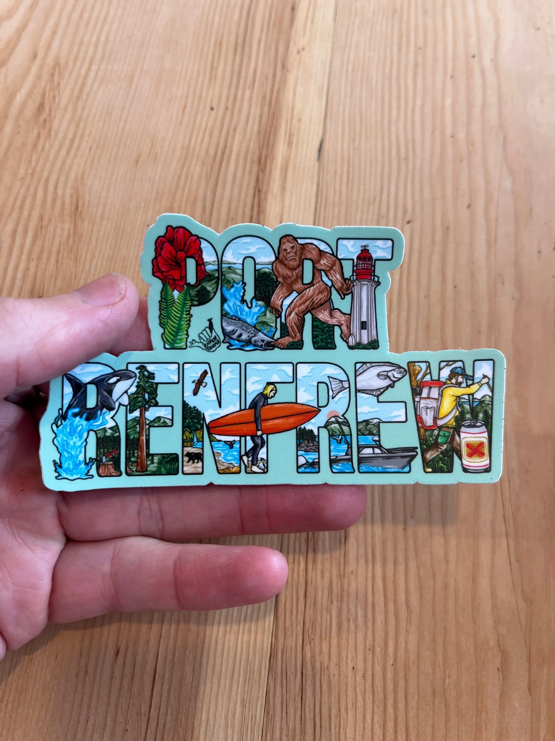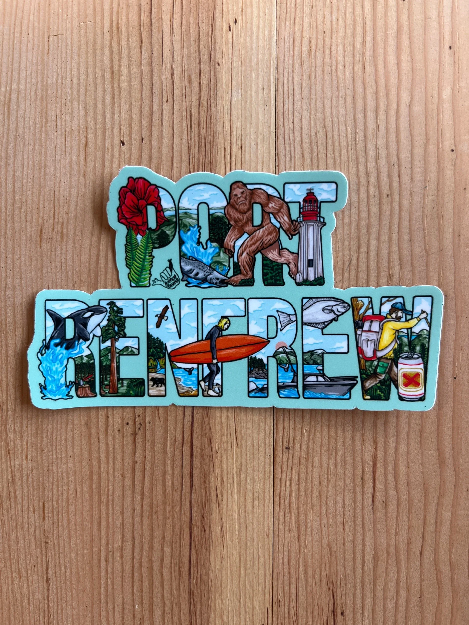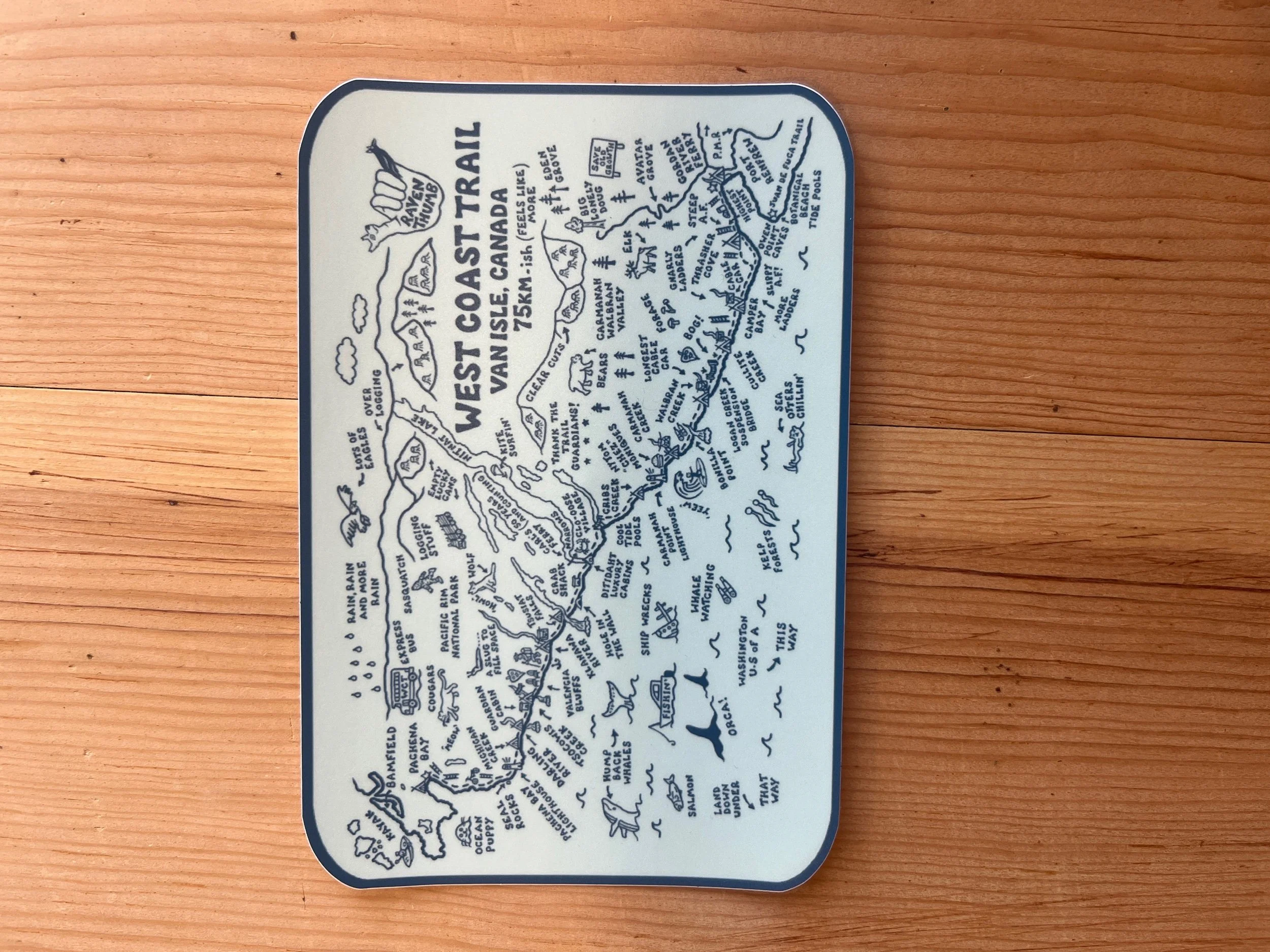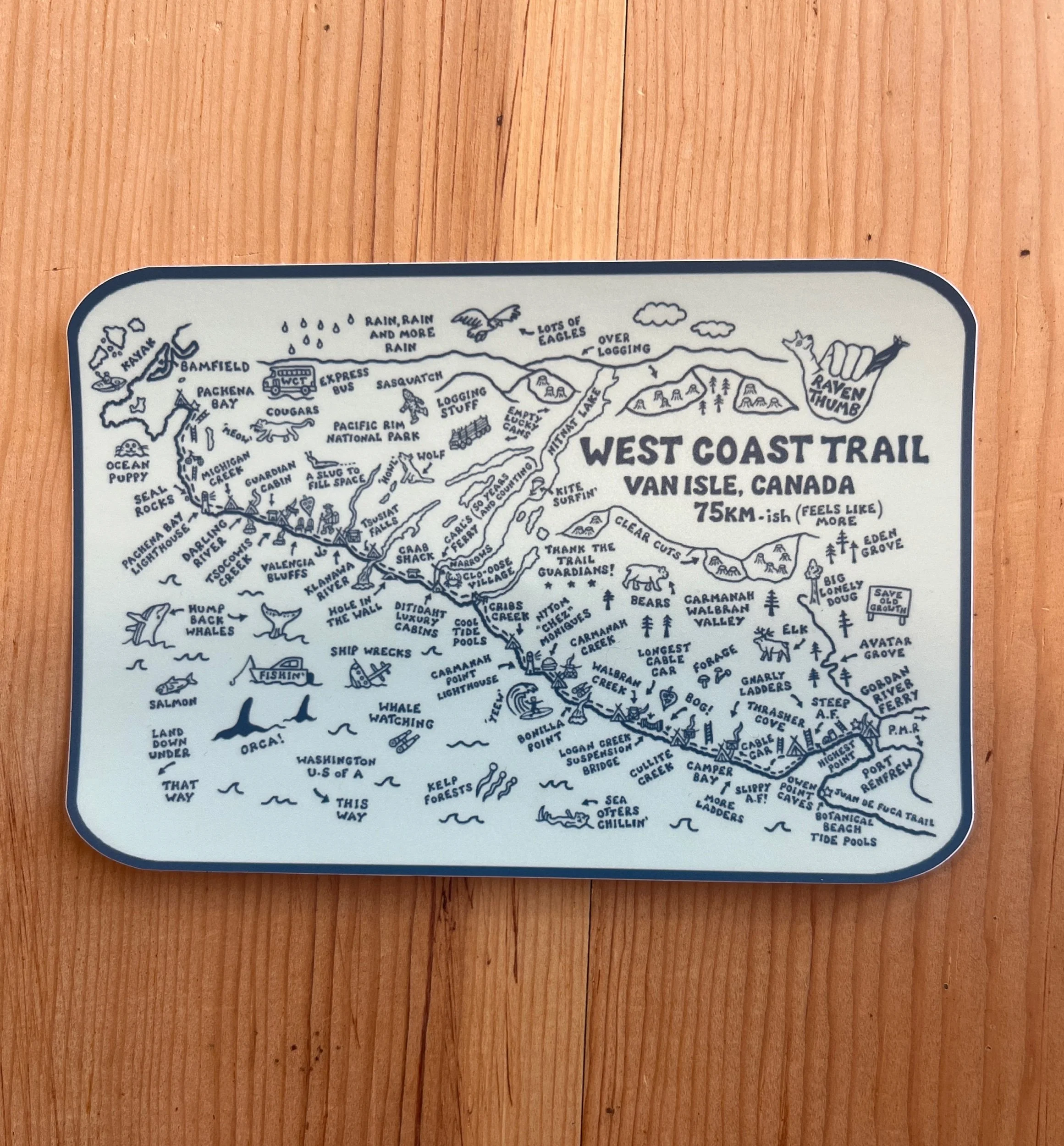 This sticker highlights the beauty of Vancouver island in every way! With nature taking back over on the lucky can in the ditch. With a slug on top, waterfall pouring out and covered in moss, ferns, wildflowers and mushrooms.