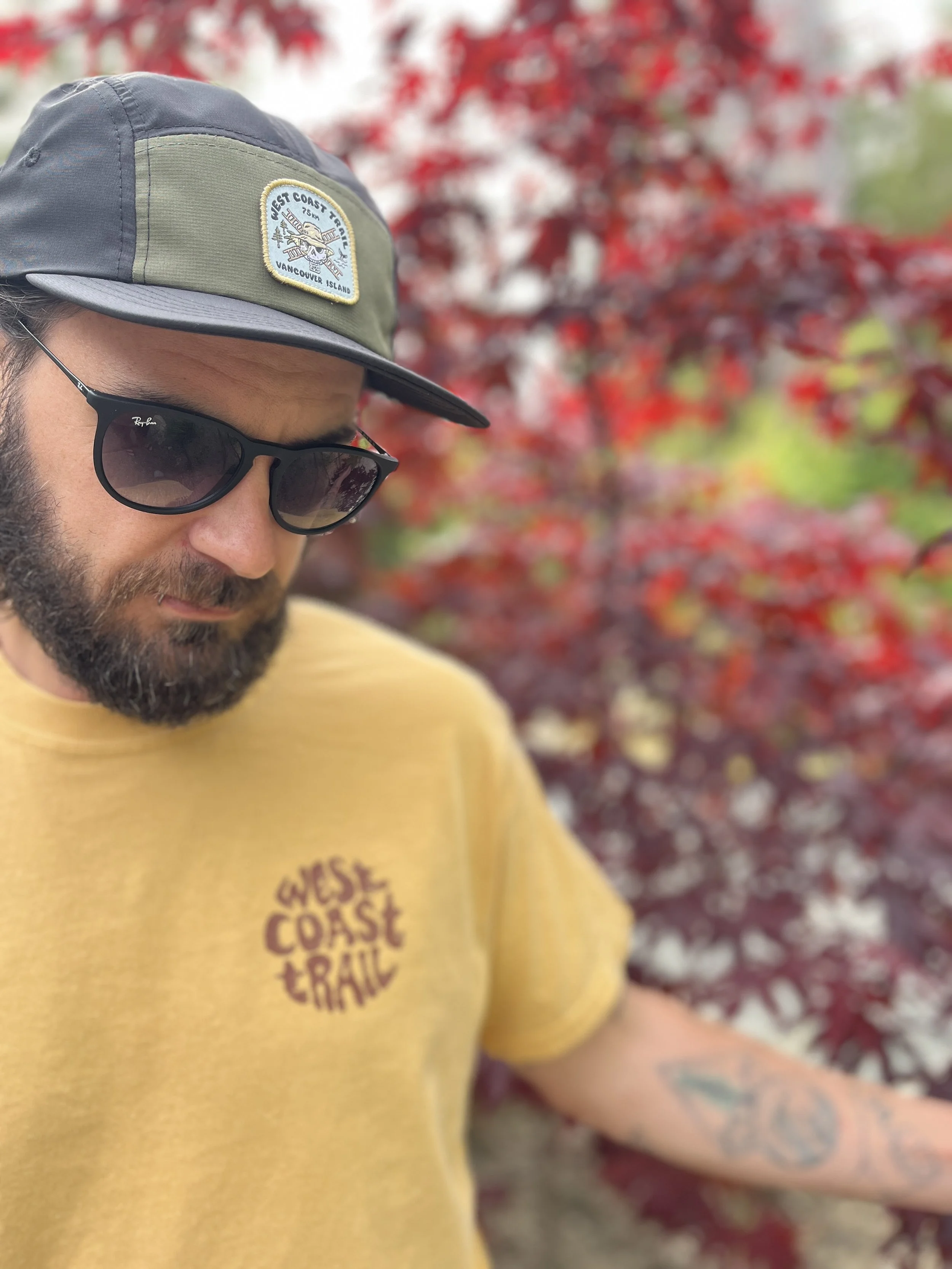 Hand drawn West Coast Trail Map printed on a 100% Cotton T-shirt, designed an produced in Port Renfrew, Vancouver Island.