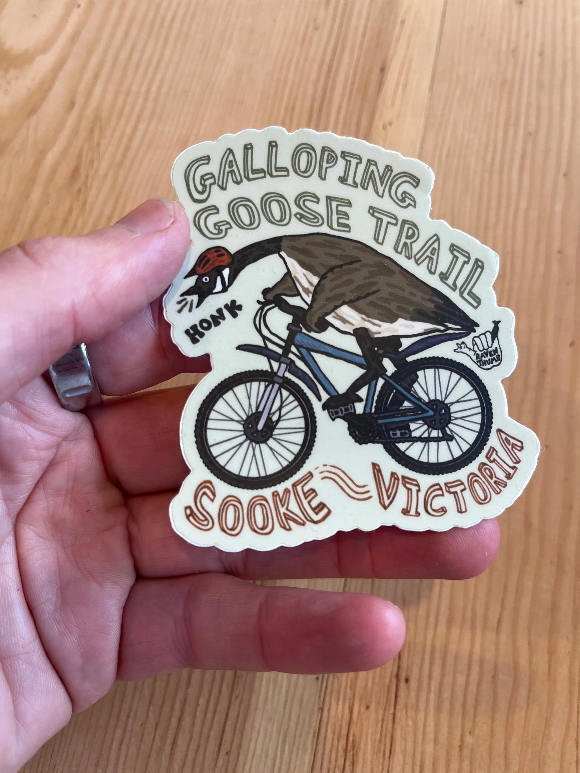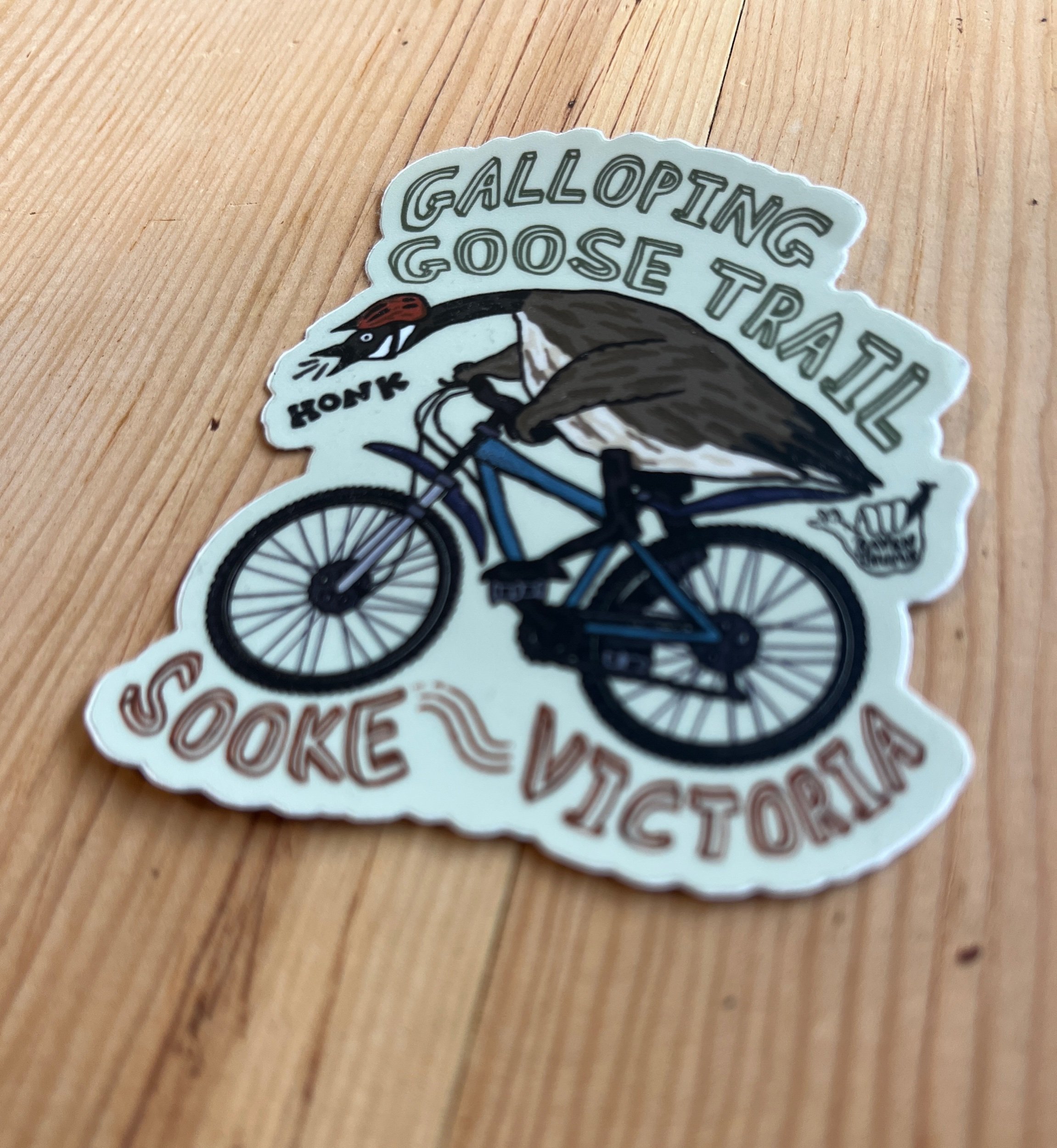 The galloping goose trail, its name comes from the original steam train that followed the route along its tracks. Although a Canadian goose riding a bike is a much funnier way to represent the trail.